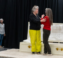 With not-so-comfortable retirements looming, long suffering nurses Gwen and Allie launch a daring (and maybe-not-entirely-thought-through) business venture — a peaceful parlour featuring a really quite splendid coffin which couples can rent by the hour as means of ‘getting things off their chest’. It’s quick-fix relationship therapy with a bit of funereal cosplay for fun. What could possibly go wrong? Especially when Gwen and Allie leap in with more enthusiasm than business acumen? Throw in some cross-generational confusion, a few less than stable clients, a dynamic, tech-savvy daughter, and a fearsome octogenarian aunt with deep pockets and things quickly get out of hand, threatening Gwen and Allie’s savings, their future and even their friendship.